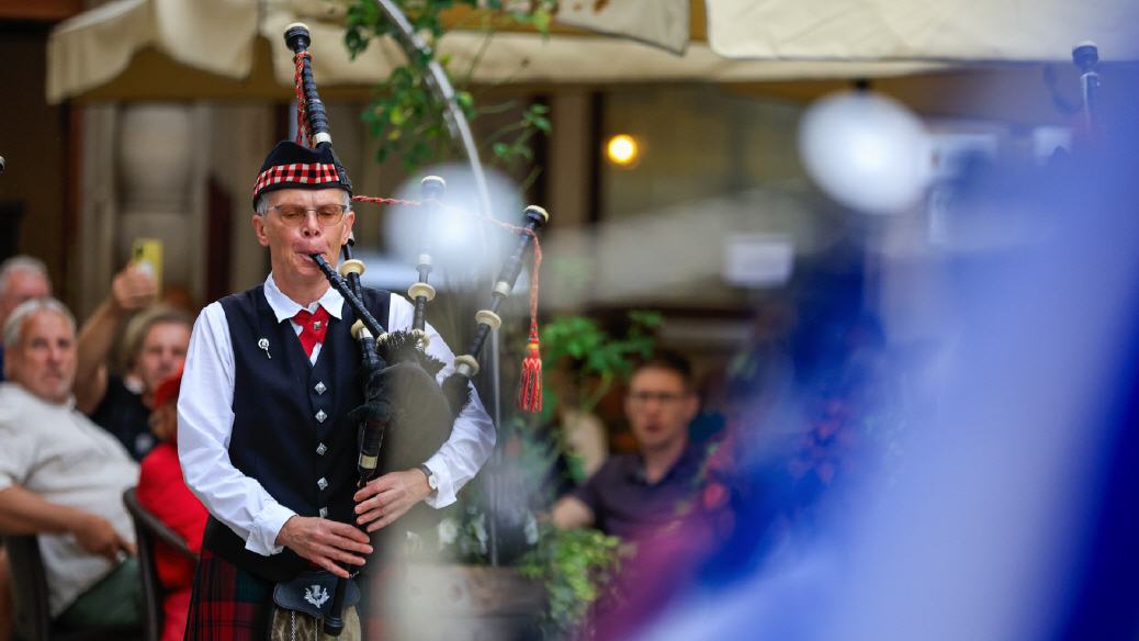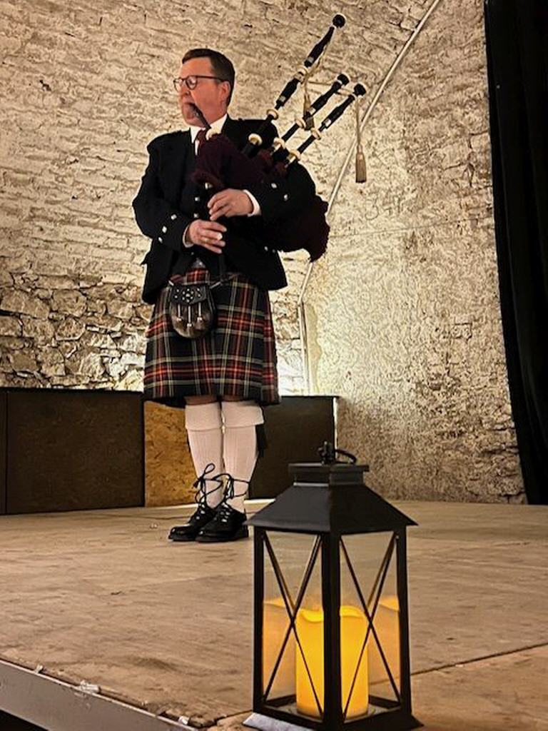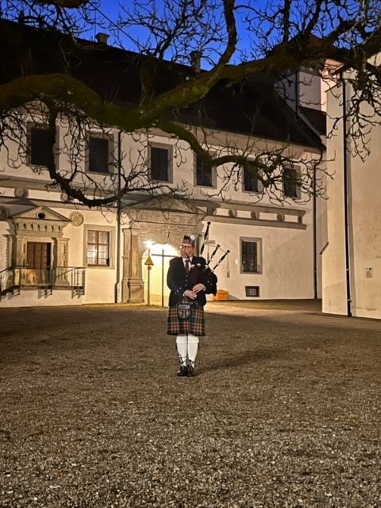 Pipemajor Peter war Teil einer neuen Veranstaltungsreihe der Stadt Meßkirch. Neben einer Kellerführung mit Laternen durch Schloss Meßkirch bei Nacht, wurden von Whisky-Experte Marc Fiederer leckere Abfüllungen verkostet.